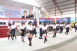 Sunday began with a march of witness on Kasai Avenue in Kinshasa. Salvationists and people linked to The Salvation Army from across the country, led by Kinshasa Staff Band, passed podium to salute the international leaders. Among the marchers were representatives from Women’s Ministries, health services, scouts and young people, with staff from a dental clinic carrying a large set of dentures to show how the clinic teaches people to brush their teeth!