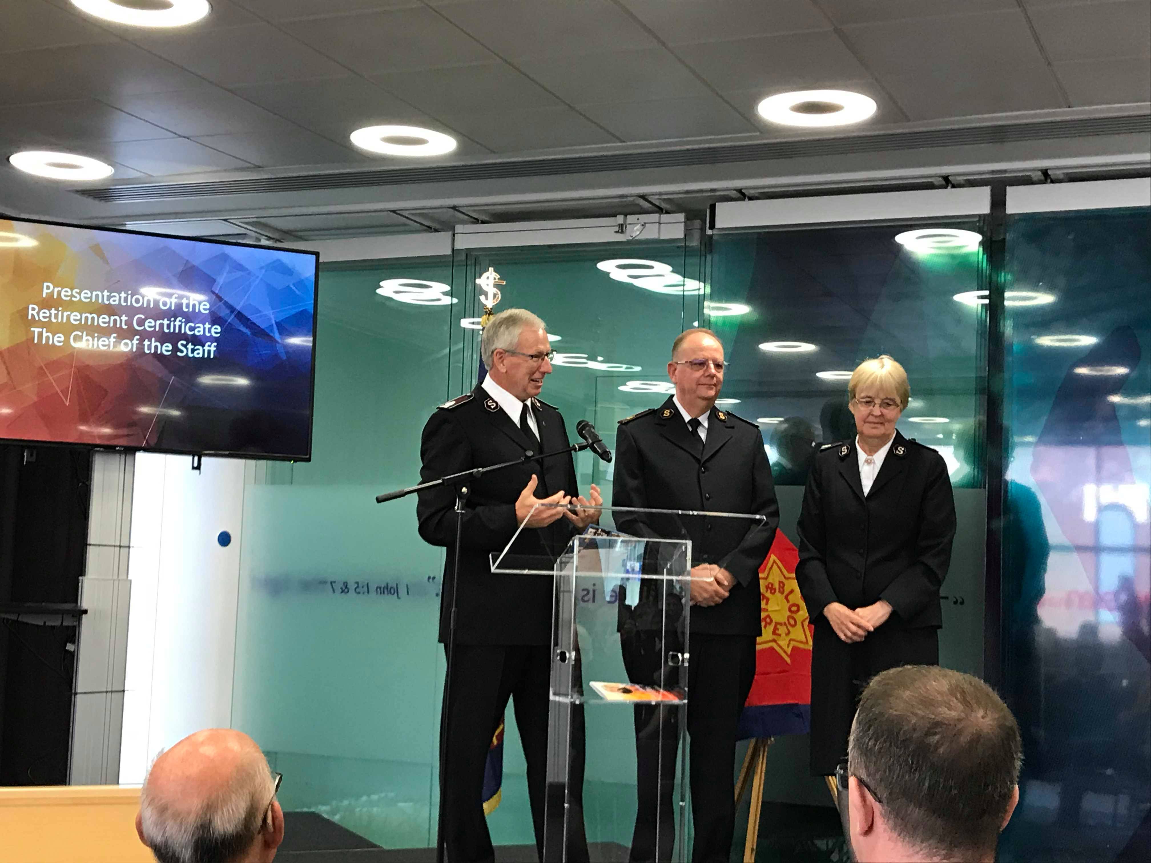 L-a chemat ulterior pe platformă pe Loc-Colonelul Garrad- spre surprinderea sa – și i-a oferit o Diplomă de Slujire Excepțională. Loc-Colonelul Garrad a slujit la IHQ timp de 37 de ani în total, dintre care peste 21 de ani i-a petrecut în biroul Generalului sau al Șefului Statului Major (inclusiv timpul petrecut lucrând pentru tatăl Generalului, Comisarul Ron Cox).