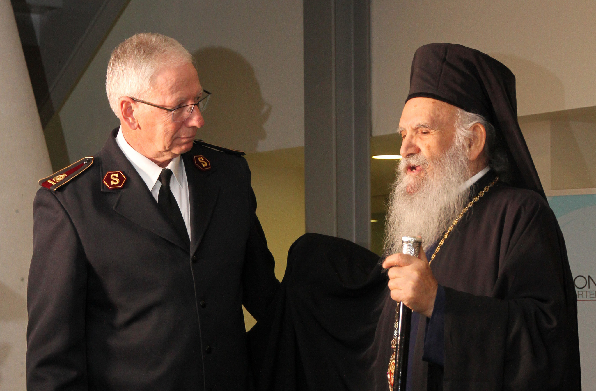 Introducing Archbishop Gregorios, the General said how pleased he was to ‘welcome new friends into this place’. The archbishop responded with words of thanks, recognising that Salvationists are ‘our brothers and sisters … united in the person of our Lord Jesus Christ’.